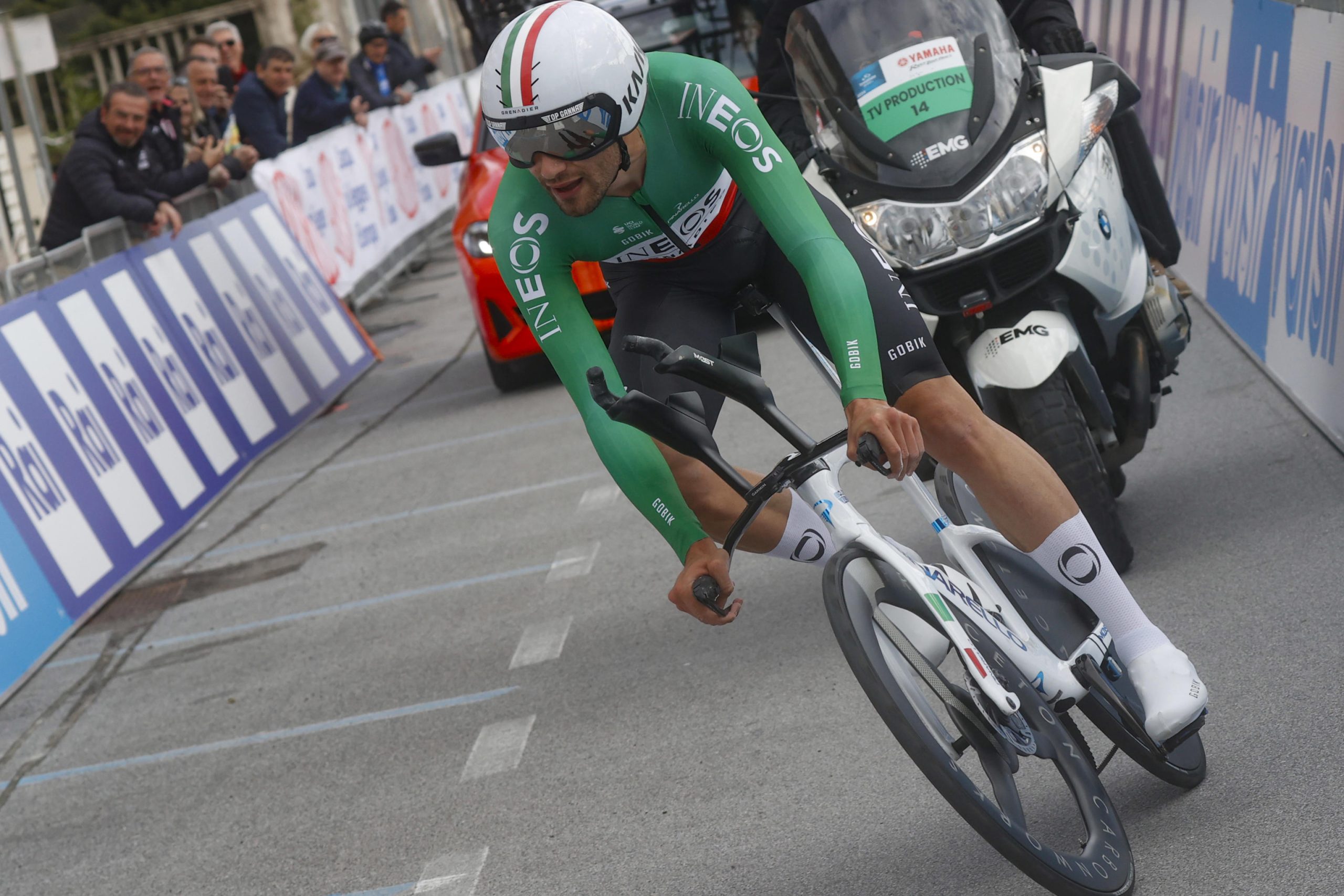 Mentre sta per prendere il via il primo corridore che aprirà quindi la diretta Tirreno Adriatico 2025, questo è il terzo anno in cui la prima tappa è una cronometro individuale a Lido di Camaiore. Nel 2022 Filippo Ganna vinse con 11” su Remco Evenepoel e 18 su Tadej Pogacar, per un ordine d’arrivo regale. Nel 2023 dominio ancora più netto per Pippo: 28” su Lennard Kamna e 31 su Magnus Sheffield, nel 2024 invece beffa per Ganna, a causa del secondo posto a 1” da Juan Ayuso, con Jonathan Milan in terza posizione a 12”.
