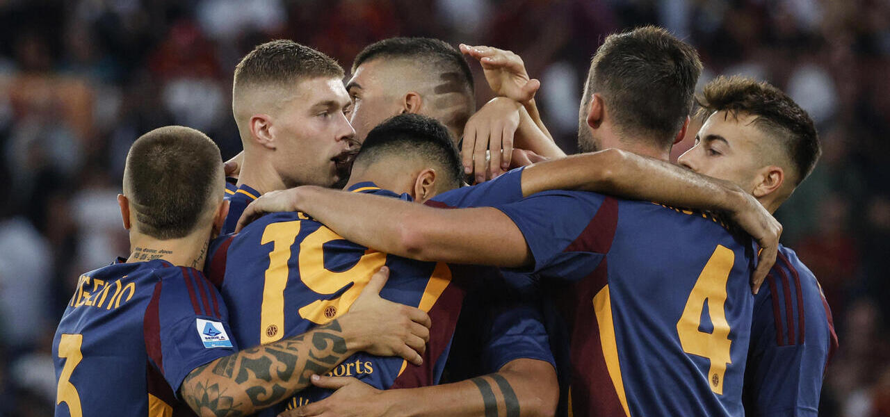 L'esultanza della Roma (Foto ANSA)