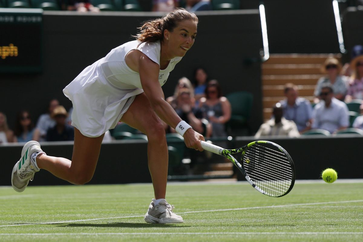 Lucia Bronzetti in azione a Wimbledon (Foto ANSA)