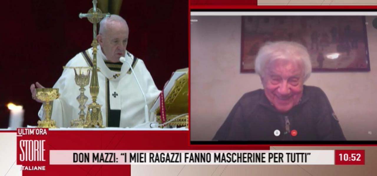 Don Antonio Mazzi in collegamento con Storie Italiane: la sua Pasqua, le mascherine prodotte dai suoi ragazzi e il prete pentito in Puglia