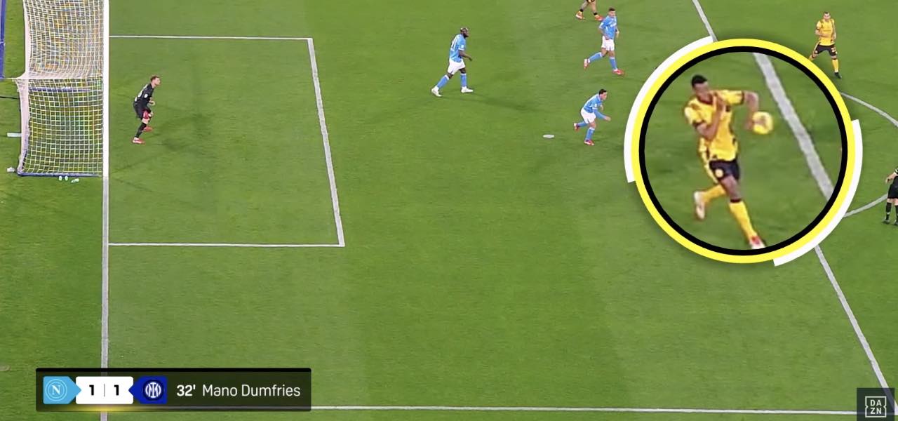 Tocco di Dumfries in Napoli Inter (screen da YouTube Dazn)