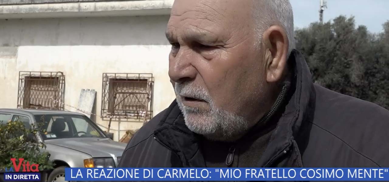 La conferma dell’avvenuta confessione è arrivata dal suo avvocato, Carmela Roma, poche ore dopo l’iscrizione del nome dell’uomo nel registro degli indagati. Le ipotesi a suo carico, riporta Ansa, sono duplice omicidio volontario aggravato dal legame di parentela e dalla premeditazione, e porto in luogo pubblico di arma comune da sparo. Poche ore prima dell’arresto, a casa di Cosimo Calò gli investigatori hanno sequestrato un’arma che avrebbe acquistato pochi giorni prima della tragedia: un fucile da caccia su cui sono in corso esami balistici per valutare l’eventuale compatibilità con quello che sarebbe stato usato per commettere gli omicidi. Tra le maglie della confessione di Cosimo Calò sarebbe spuntata una rivelazione choc: “Ammazzerei Carmelo anche adesso, è lui la causa dei miei mali“. Queste, secondo La vita in diretta, le parole spese dall’indagato per il duplice omicidio di Carovigno davanti al gip, in riferimento alla sua presunta intenzione di uccidere anche l’altro fratello, Carmelo. Un proposito che sarebbe sfumato per l’assenza della potenziale vittima nella sua abitazione, dove lo stesso 83enne si sarebbe recato prima e dopo l’uccisione dei coniugi con lo scopo di eliminare anche lui. Oggi colui che sarebbe stato “l’altro obiettivo” di Cosimo Calò ha paura. Lo ha dichiarato ai microfoni della trasmissione di Alberto Matano, aggiungendo anche un ritratto inquietante del fratello finito in carcere.
