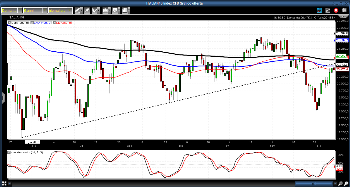 L’indice americano continua la sua corsa rialzista. I prezzi sono impostati al rialzo come si può chiaramente vedere dalla trendline tracciata da settembre a dicembre 2010. Le MM 50,100 e 200gg. Sono orientate al rialzo e sia il MACD che lo stocastico confermano l’esistenza del trend positivo di breve periodo.