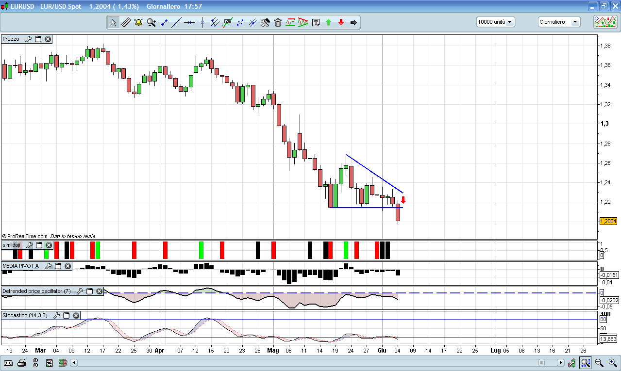 Indubbiamente le notizie che continuano da eurolandia non sono certamente di buon auspicio per la moneta unica. Nonostante si intravedano timide riprese nei PIL nazionali di Italia, Germania e Francia, le compagnie di rating continuano ad allarmare i mercati, adducendo dubbi sulla reale condizione dei bilanci pubblici. Questo destabilizza i mercati che continuano a penalizzare l’euro. Sia nel lungo che nel breve la situazione grafica è negativa. Nel breve avevamo evidenziato un possibile doppio minimo da insanabili ottimisti, ma in realtà il break out ribassista del supporto a 1,2150 ha aperto nuovi orizzonti ribassisti.
