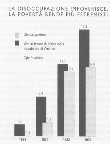 La conclusione dell’esperimento fece sì che i disoccupati aumentarono e con essi anche il seguito dato a Hitler. Un grafico ci aiuta a comprendere meglio il significato dell’affermazione appena fatta.