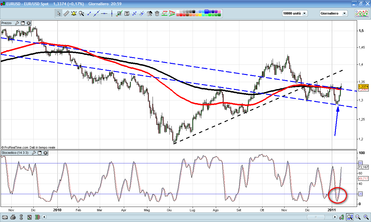 La fase di grande volatilità che sta vivendo il cross valutario è notevole. Le notizie che arrivano dal fronte macro sullo stato dei debiti dei paesi sovrani hanno oramai frequenza giornaliera tale da influire giorno dopo giorno sull’andamento valutario. Il rimbalzo visto in questi ultimi giorni ci porta a identificare come resistenza area 1,3500 e successivamente area 1,3700. Supporti importanti 1,3000 – 1,2890.