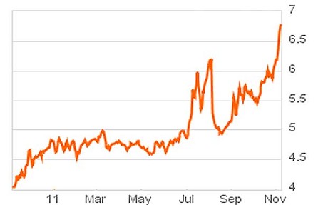Di più, a fronte della rottura della linea Maginot dei 500 punti di cui vi avevo parlato la scorsa settimana (quella garantita dallo spread calcolato su un paniere di bond con rating AAA, Germania, Francia e Olanda), LCH Clearnet, la cassa di compensazione che sovrintende il mercato obbligazionario, ha alzato i margini sulla detenzione del debito italiano, portando quelli sul decennale dal 6,65% all’11,65%, ovvero per detenere 100 euro del nostro debito a 10 anni non servono più 6,65 euro ma 11,65: ecco spiegata la svendita di ieri e il relativo spread a cannone. Barclays Capital ha calcolato che questo aggravio (fra il 3% e il 5%, dipende dal tipo di bond) costerà alle banche italiane 8 miliardi di euro in più. Questo in un momento in cui francesi e tedeschi, con la collaborazione dell’Autorità bancaria europea (l’Eba), hanno scritto regole per la ricapitalizzazione assolutamente a loro favore e contro le banche italiane e spagnole, costrette a salti mortali che non solo porteranno un’automatica stretta creditizia verso famiglie e imprese, ma anche all’accettazione del fatto di essere “figli di un Dio minore”, poiché pur essendo meno esposte alla leva (Unicredit è 14-1, contro il 30-1 di Deutsche Bank) dovranno ricapitalizzarsi più delle loro colleghe teutoniche e transalpine in un momento di illiquidità e congelamento del mercato interbancario.