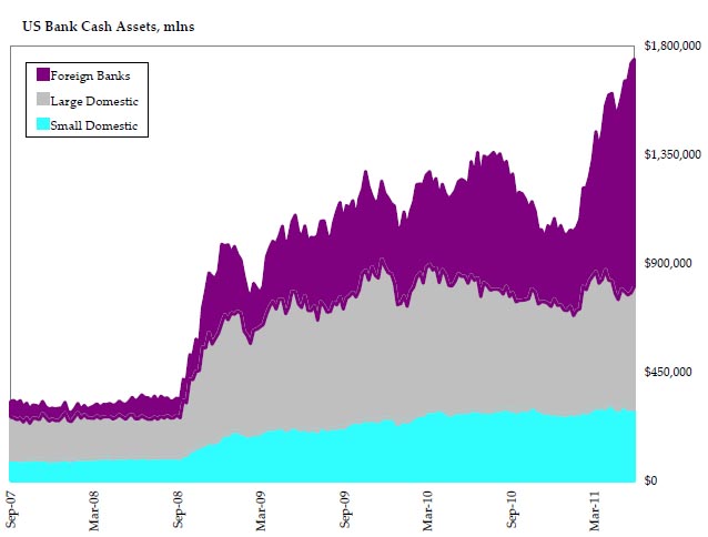 Come mai? Partendo dal dato di fatto che questo denaro è fruibile attraverso operazioni on e off-shore, ciò che è accaduto è che i 600 miliardi di dollari cash sono stati rapidamente rimpatriati e utilizzati da filiali americane di banche straniere per riempire i buchi di sottocapitalizzazione lasciati dall’esposizione ai Pigs insolventi e per tutte le necessità di capitale legate a rischi di bancarotta. Vi stupite ancora del perché, di colpo, le banche tedesche sono così desiderose di pagare i tagli sui rendimenti dei bond greci, mentre quelle francesi, beneficiarie sì ma in maniera minore dei regalini della Fed, no?