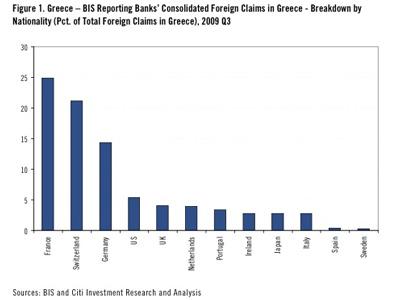 E sapete una cosa che nessuno vi dirà? Francia, Regno Unito e Germania la scorsa settimana sono stati i primi tre nella classifica dei riceventi netti di scommesse al ribasso da parte dei mercati e non solo al livello sovrano, per tutte le categorie: il derisking nozionale netto francese è pari a 630 milioni di dollari (pari a 129 contratti), quello del Regno Unito di 558 milioni e quello tedesco di 370 milioni. Ma ancora non basta, visto che il cortocircuito è ormai folle: sapete chi sono i paesi più esposti al debito greco? L’Irlanda (3,9% del suo Pil in debito greco) e il Portogallo (4,3% del suo Pil in debito greco): insomma, un esercito di storpi con una sola stampella a disposizione che si regge uno con l’altro. Alla prima caduta, giù tutti.