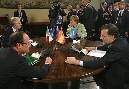 La fascinosa (ai suoi bei giorni) Christine Lagarde spiega che l’eurozona è in uno stadio critico. Opinione del Fondo monetario internazionale. Il Commissario europeo Olli Rehn e il dimissionario presidente dell’Eurogruppo, Jean Claude Junker, concordano. Il nostro presidente del Consiglio, Mario Monti, spiega che nel summit (che non si sa perché tutti pronuncino “sammit”, essendo una parola latina) europeo del 28-29 giugno è in ballo l’Europa. Eppure a Roma si presentano in quattro, per un vertice e una conferenza stampa, che, con il passare dei minuti, mentre parla il francese Hollande, lo spagnolo Rajoy, la tedesca Merkel e il “padrone di casa” Monti, invertono il trend dei mercati, facendoli passare da territorio positivo a negativo. La forza dei quattro leader dei paesi più importanti economicamente nell’eurozona produce effetti sempre deprimenti. Eppure parlano di destinare 130 miliardi di euro alla crescita, Angela Merkel si produce in un “inno”: “Più Europa” e “Irreversibilità dell’euro”. Francois Hollande parla di “Eurobonds in prospettiva. Meno di dieci anni”. Che tempismo!