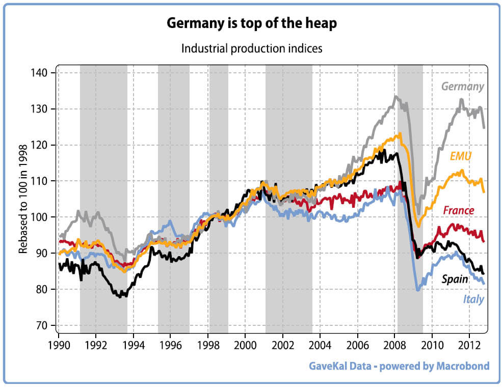 Lo spiega bene questo grafico a fondo pagina, dal quale si evince chi è l’unico, vero vincitore all’interno del blocco mercantilistico europeo: la Germania. Non a caso, ieri Draghi ha fatto filtrare dall’Eurotower il seguente messaggio: «La Bce è preoccupata che la forza dell’euro possa colpire le ripresa negli Stati in crisi», conferma di quello che ormai tutti danno per assodato. Il cross a 1,35 è il livello chiave di resistenza per il governatore, rotto il quale si dovrà agire. Ora la palla passa quindi interamente nelle mani dell’unico uomo in grado di poter tenere testa a Weidmann e soci, ovvero proprio Mario Draghi.