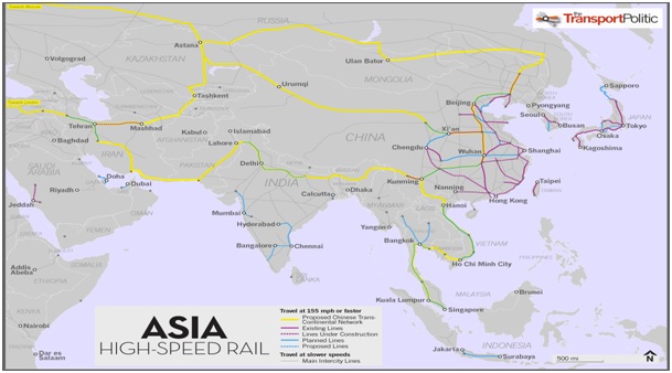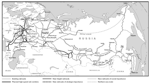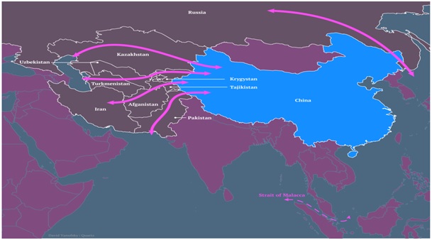 Ebbene, dopo una serie di (poco) intelligenti provocazioni occidentali – allargamento della Nato, bombardamento della Nato a Belgrado distruggendo l’ambasciata cinese, rivoluzioni colorate e primavere varie, guerre in Libia e Siria, e l’insistente accerchiamento americano della Cina nell’area Asia-Pacifico – è stata l’assurda persecuzione sanzionatoria che Obama ha dovuto imporre alla Russia sul caso Ucraina che ha convinto Russia e Cina a spostare l’asse del baricentro eurasiatico dall’Europa (Mosca) all’Asia (Pechino). Come ha scritto Dimitri Trenin, direttore del Carnegie Russia, avevano ragione i liberali russi che già sollecitavano negli anni ‘90 lo sviluppo di un’Eurasia da Lisbona a Pechino. Gli errori occidentali, e quelli paradossali dell’Ue, scrive ancora Trenin, hanno reso possibile la realizzazione non del piano russo – visto che l’Eurasia ha perso l’Europa (per ora) – ma di quello cinese che era stato esplicitato in numerosi saggi con il nome della “nuova via della seta”. Quest’ultimo è una vasta rete di “connessioni” terrestri tra la Cina e l’estremo oriente siberiano e l’Asia centrale. In questo modo, il blocco navale americano nel pacifico e nel Golfo è aggirato via terra con percorsi su territori di paesi “amici” (si vedano le immagini in coda a quest’articolo).