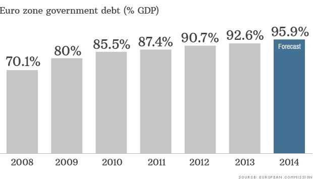 Si sa: si va spesso alla presentazione di documenti per vedere e farsi vedere e gustare la cena nei giardini del Ripetta Residence, specialmente se la serata primaverile è bella. Tuttavia, l’allarme del Rapporto è in buona compagnia. Il grafico a fondo pagina mostra la vera e propria escalation del debito dell’eurozona rispetto all’impegno di tenerlo al di sotto del 60% del Pil.