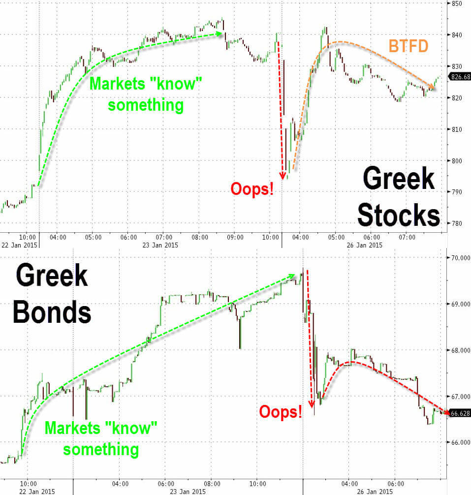 Due cose, essenzialmente: primo, il mercato greco ormai trada per i fatti suoi rispetto agli altri d’Europa, visto sia la dinamica di ieri, sia il fatto che un governo di estrema sinistra ed euroscettico – il quale vuole ridiscutere sia il debito che le politiche di austerity – che sia allea per governare con una formazione anti-europeista addirittura di destra fino alla settimana scorsa avrebbe fatto crollare tutte le piazze del Continente, mentre ieri no. Quindi, a mio avviso tutti hanno già prezzato il “Grexit”, l’uscita di Atene dall’euro. Secondo, quel calo dei corsi azionari greci deve preoccupare, perché significa che l’aspettativa benefica del Qe per le banche elleniche tanto sbandierata dalle banche d’affari nei loro report è già svanita, incapace di sostenere un rally oltretutto creato da “dip-buyers”, gente che oggi ha provato con Atene e domani magari si lancia su Brasile o Australia. Bisogna guardare in faccia la realtà signori miei e i suoi numeri: l’economia greca è crollata del 25% dal suo picco pre-crisi a metà del 2008, il tasso di disoccupazione è del 25,8%, ovvero stando a dati dello scorso ottobre 1,2 milioni di persone sono senza lavoro.