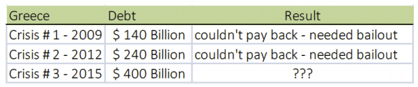 La scorsa settimana ho cercato di dimostrarvi che il dato di crescita della Grecia nel secondo trimestre di quest’anno, +0,8%, era da addebitarsi unicamente a deflazione e spese anomale in anticipo sui controlli sui capitali. Oggi mi spingo un po’ oltre e cerco di dimostrare che al netto del nuovo pacchetto di aiuti, non solo non cambierà nulla, ma, anzi, la Grecia già oggi è in depressione. Il primo concetto è semplice, ne abbiamo parlato mille volte e lascio che sia il primo grafico a fondo pagina a esplicitarlo per l’ennesima volta: sono solo soldi buttati, ovvero l’illusione di un aiuto che andrà a incidere sull’economia reale del Paese per meno del 5% del totale, il resto sono partite di giro sulle scadenze e garanzie per non far fallire le banche del Paese.