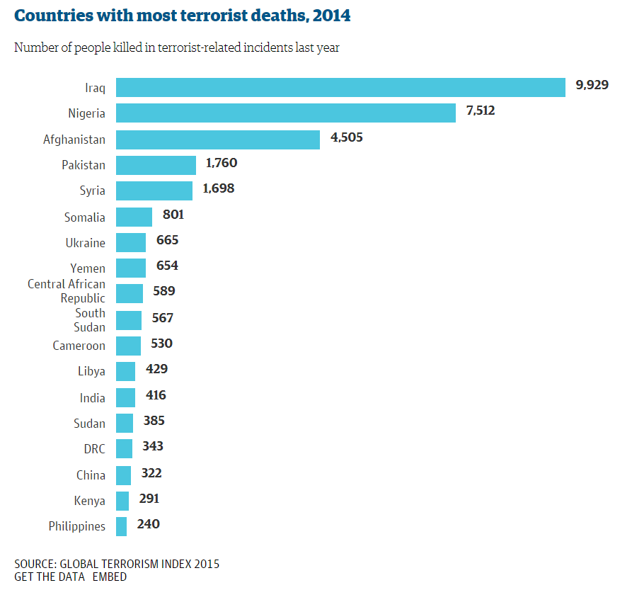 Trentuno morti. 31. Corpi senza più calore: mariti, mogli, padri, madri, figli. Morti, perché? In casi come questi la reazione pavloviana alla Ferrara o alla Fallaci è la più comoda, te la prendi con gli islamici e via: ma non sono state le ricette neo-con seguite all’11 settembre ad averci messo in questo casino, o sbaglio? Questi guardiani dell’Occidente non hanno nulla da dire sui rapporti del loro padrone di riferimento, gli Usa, con l’Arabia Saudita e gli altri Paesi del Golfo, i veri finanziatori del terrorismo sunnita in mezzo mondo? No, a loro piacciono le semplificazioni, le idiozie del tipo “non tutti gli islamici sono terroristi ma tutti i terroristi sono islamici”. Al di là che per un trentennio tutti noi avremmo potuto pagare il prezzo di questa semplificazione a causa dei cattolicissimi guerriglieri dell’Ira, vorrei che mi dessero una spiegazione alla tabella a fondo pagina: al netto degli attacchi di Parigi del 2015, chi ha ucciso chi nel 2014? Islamici che hanno ucciso altri islamici, nel disinteresse dei nostri sederini al caldo. E ancora, sapete dove si trova la più grande moschea d’Eurasia (io non credo all’Ue, credo a un’Europa che contempli i Balcani e la Russia)? A Mosca, per espressa volontà di Vladimir Putin. In tutto il territorio russo le moschee non si contano e la nutrita presenza musulmana non costituisce affatto un problema. Se ne desume che il problema di fondo non è – come i Ferrara sostengono – l’Islam in quanto tale, diversamente quel che accade oggi in Europa accadrebbe anche in Russia.