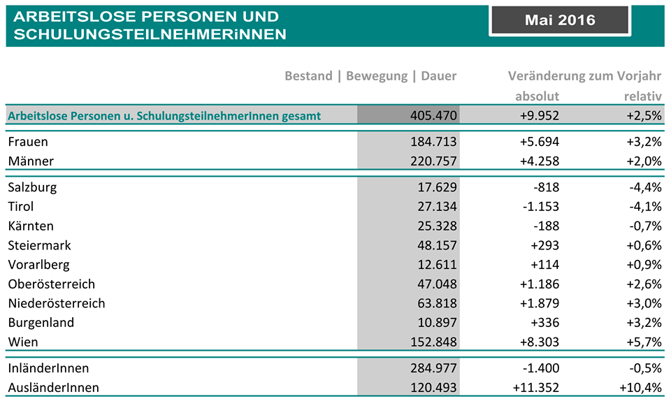 Riprova di quanto scrivevo ieri riguardo all’Europa del lavoro è l’Austria, in sé un Paese piccolo con circa 8,7 milioni di abitanti, ma proprio per questo che patisce più di altri squilibri demografici e instabilità sociale, tanto più quando la crisi comincia a erodere i margini di certezze su cui si aveva costruito la propria vita. La scorsa settimana sono usciti i dati relativi al mercato del lavoro e a maggio di quest’anno i disoccupati erano 405.570, +2,5% su base annua, con il dato della disoccupazione di lungo termine in serio aumento e la sola Vienna che ha visto i senza lavoro aumentare del 2,7% rispetto al maggio 2015.
