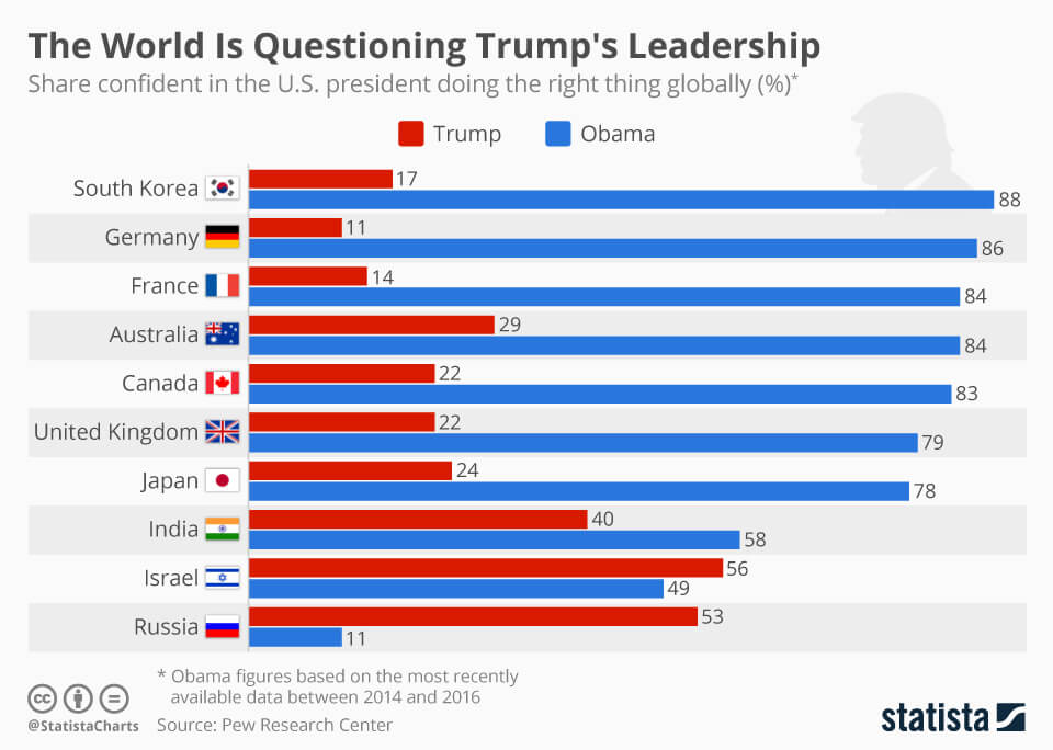 Tutte coincidenze, ovviamente, lo sapete che sono un dietrologo. E anche questo grafico ci dice che certi avvenimenti arrivano nel momento giusto, visto che mezzo mondo pare convinto che Donald Trump non si adatto a governare una superpotenza. L’altro mezzo è composto da India e, guarda guarda, Russia. Mettete nel calderone che, di colpo, il presidente Usa abbia aperto al sostegno del suo Paese verso la famiglia del piccolo Charlie Gard e il quadro diventa un po’ troppo romanzato per apparire spontaneo. Il tutto, poi, alla vigilia di un G20 che potrebbe rivelarsi una pesante pietra tombale per le ambizioni della Merkel di mantenere l’egemonia europea, visto che il suo programma di isolare Trump dopo la rottura sul clima al G7 di Taormina ha registrato solo defezioni, in primis quella del Paese su cui Berlino contava di più per mettere all’angolo il tycoon statunitense, la Cina.