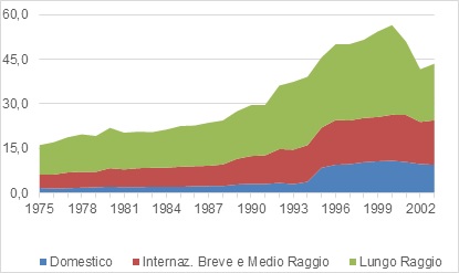 Grafico 1 – Il mercato italiano del trasporto aereo
