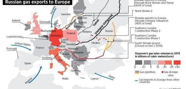 Ma non basta, c’è di più. Stranamente, infatti, l’incidente del mare di Azov è avvenuto non solo alla vigilia del G20 (e dell’incontro Trump-Putin, ancora di fatto da confermare, ma, quantomeno, non ancora cancellato ufficialmente), bensì poche settimane dopo la vera ragione della nuova ondata di destabilizzazione legata al caso ucraino: questa, ovvero il colpo gobbo compiuto da Mosca come assicurazione sulla vita rispetto al suo export energetico verso Balcani e Ue e alla volontà statunitense di bloccare (o, almeno, ostacolare al massimo), in qualsiasi modo, le infrastrutture di Nord Stream 2, il gasdotto che unirà Russia e Germania, bypassando guarda caso proprio l’Ucraina filo-statunitense di Poroshenko, come mostra plasticamente il primo grafico.