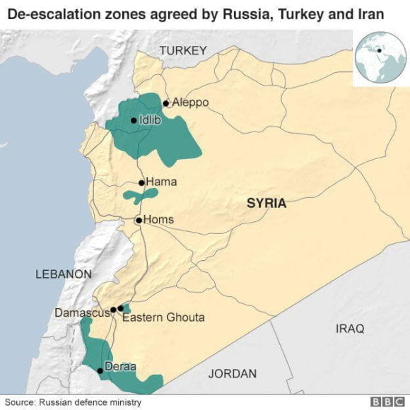 C’è però un problema. Come riferito dal Financial Times, a perdere la pazienza in Siria sarebbe la Russia, irritata a tal punto dal ritrovato feeling fra Turchia e Casa Bianca da aver nemmeno troppo velatamente minacciato di essere pronta a porre fine alla tregua sancita quattro mesi fa e operare un’escalation in grande stile, addirittura riattivando i piani di attacco congiunto con le milizie fedeli ad Assad e quelle filo-iraniane di Hezbollah per liberare del tutto la ex roccaforte di Idlib. Insomma, la grande offensiva che si era arenata proprio per il ritorno al buon senso di tutte le parti in causa, potrebbe tornare sul tavolo come opzione. Quantomeno, come minaccia, in caso – come fatto intendere dallo stesso Vladimir Putin – il ritiro americano dalla Siria dovesse tramutarsi nell’ennesimo annuncio senza epilogo reale. In tal senso, la Russia da giorni sta parlando di rapido deterioramento della situazione nell’area, questo nonostante l’impegno della Turchia a mantenere i militanti islamisti, Al-Nusra in testa, almeno a 15-20 chilometri dalla zona cuscinetto a difesa del cessate il fuoco, come mostra la mappa.