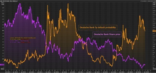 Eh già signori, mi tocca diventare sgradevole e lo faccio con enorme soddisfazione, questa volta: avevo ragione io. Non solo la ripresa era un farsa e i mercati che correvano soltanto una bolla in espansione, ma, udite udite, tutte le Banche centrali sono tornate in modalità espansiva. Sì, lo so che lo scrivo da settimane. Come da trimestri annuncio il redde rationem, puntualmente arrivato, fra le risatine di scherno degli economisti che contano, quelli bravi e con i titoloni accademici. Ma stavolta, la questione è differente. Perché all’appello manca solo la Bce e la riunione del board di marzo, a occhio e croce, potrebbe non limitarsi all’annuncio di nuove aste di rifinanziamento a lungo termine per il sistema bancario dell’eurozona, la cui necessità ormai impellente è stata certificata ieri dagli schianti del settore a Piazza Affari e da quello di Deutsche Bank, scesa sotto la soglia psicologica di 8 euro per azione e legato alle voci sempre più insistenti di fusione con Commerzbank, come mostra il grafico.