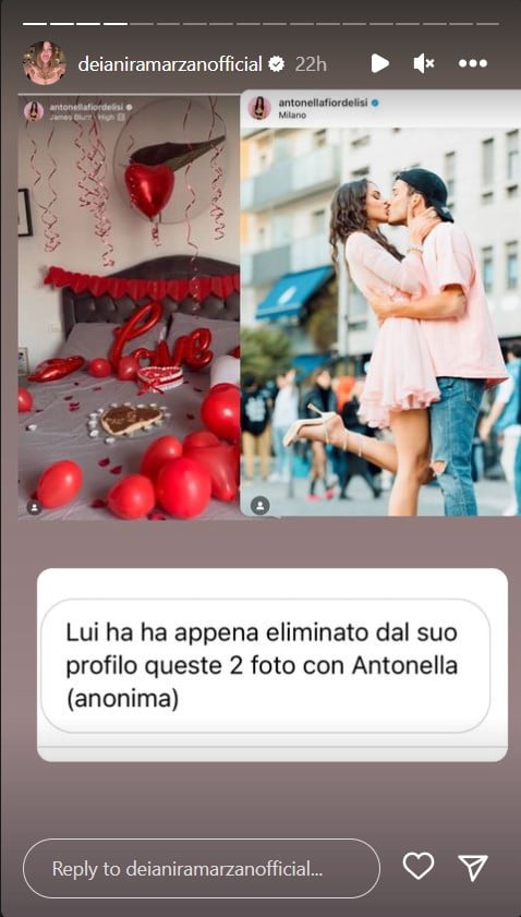 Deianira Marzano ha pubblicato la segnalazione di un’utente, la quale dichiara che Donnamaria ha cancellato alcune foto che lo ritraggono con l’influencer. Sembrerebbe, dunque, un capitolo chiuso la storia d’amore tra i due ex gieffini che hanno appassionato il pubblico con i loro alti e bassi. Nel frattempo, Antonella riceve molti ‘like’ da parte di un calciatore spagnolo…