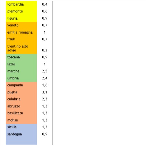 Nelle 4 regioni molto oltre la media, Puglia e Calabria nel sud, ma anche Marche ed Umbria nel centro, dove si viaggia sul livello 2,5 cioè una lode ogni 2-3 classi, sembra plausibile pensare ad una lode assegnata al migliore di un certo indirizzo. Non sarebbe assurdo a mio parere pensare ad una lode per classe!