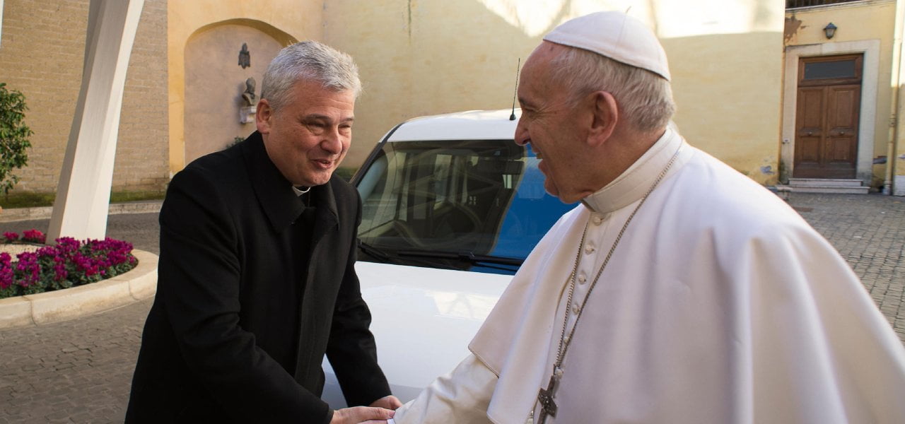 Papa Francesco con l'elemosiniere Card. Konrad Krajewski (LaPresse)
