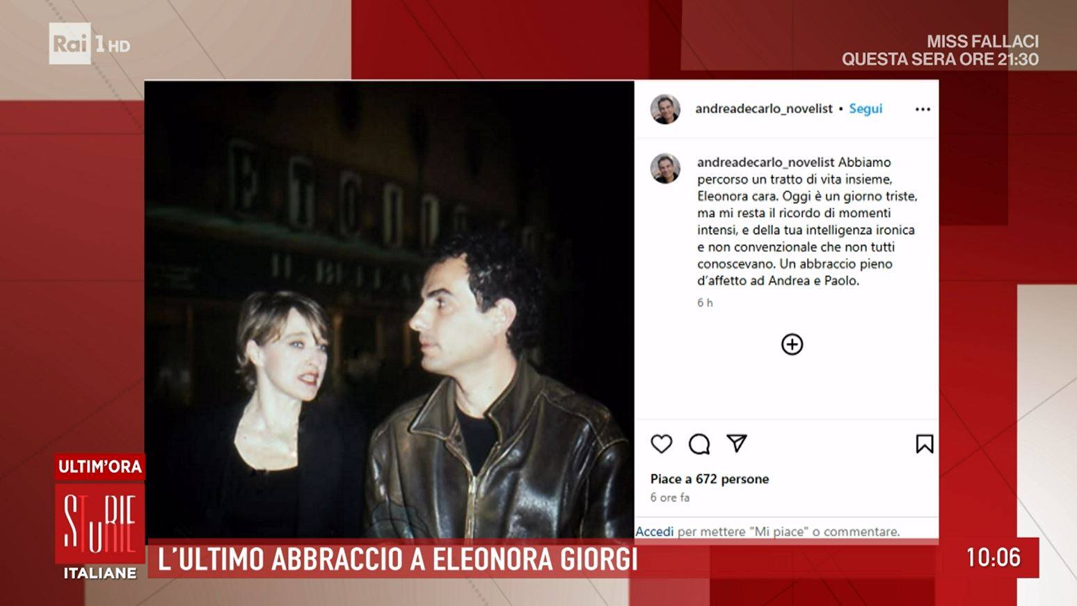 Le parole di Andrea De Carlo, ex compagno di Eleonora Giorgi, a Storie Italiane: uno splendido ricordo della compianta attrice