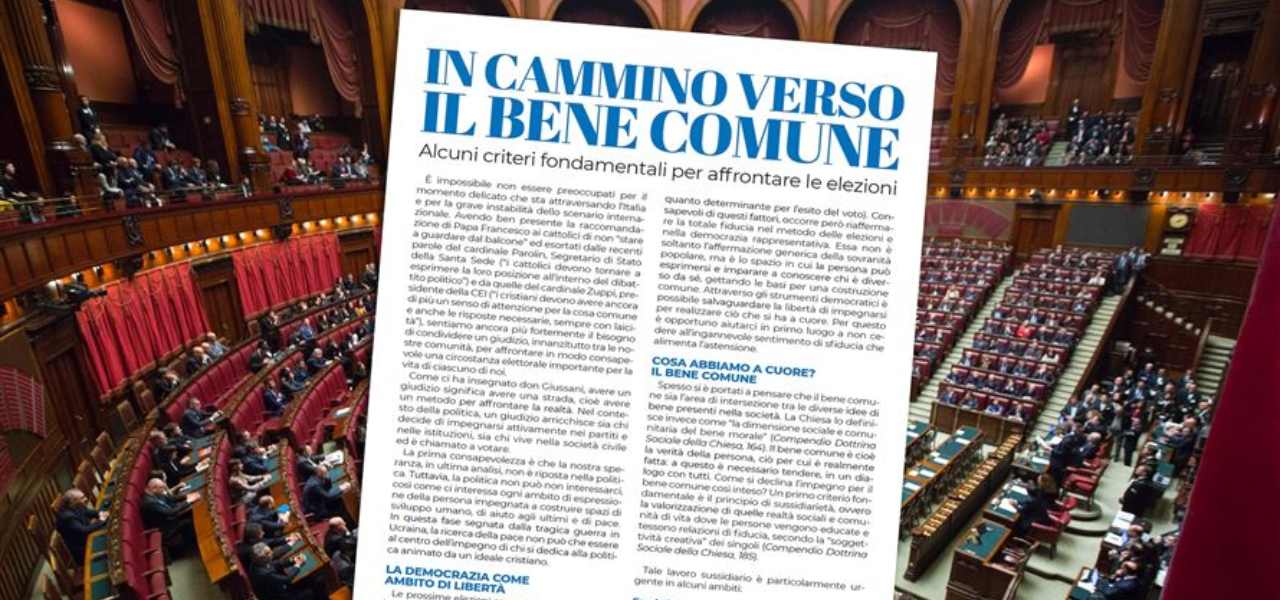 Il volantino di Comunione e Liberazione in vista delle Elezioni 2022: "In cammino verso il bene comune. Alcuni criteri fondamentali per affrontare le elezioni”