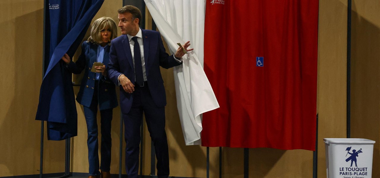 Macron e moglie Brigitte alle Elezioni Europee in Francia (ANSA-EPA, 2024)
