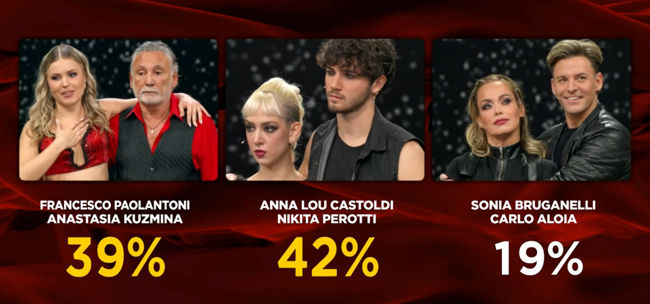 Dopo la polemica di Fabio Canino contro Selvaggia Lucarelli e Guillermo Mariotto che non i loro 5 e 4 hanno contribuito a mandare allo spareggio una coppia che non avrebbe dovuto esserci, si passa poi a Sonia Bruganelli e Carlo Aloia. L’opinionista televisiva nella clip introduttiva ha voluto sottolineare il fatto di aver subìto molto infortuni, che hanno influenzato il suo percorso, e non aver mai mollato e si esibiscono in un Tango giudicato la sua migliore performance da Carolyn Smith. Si passa ai voti del pubblico e il verdetto è definito: salvi Francesco Paolantoni e Anna Lou Castoldi, eliminata Sonia Bruganelli con Carlo Aloia ma la coppia può sempre sperare nel ripescaggio. (Agg. di Liliana Morreale)