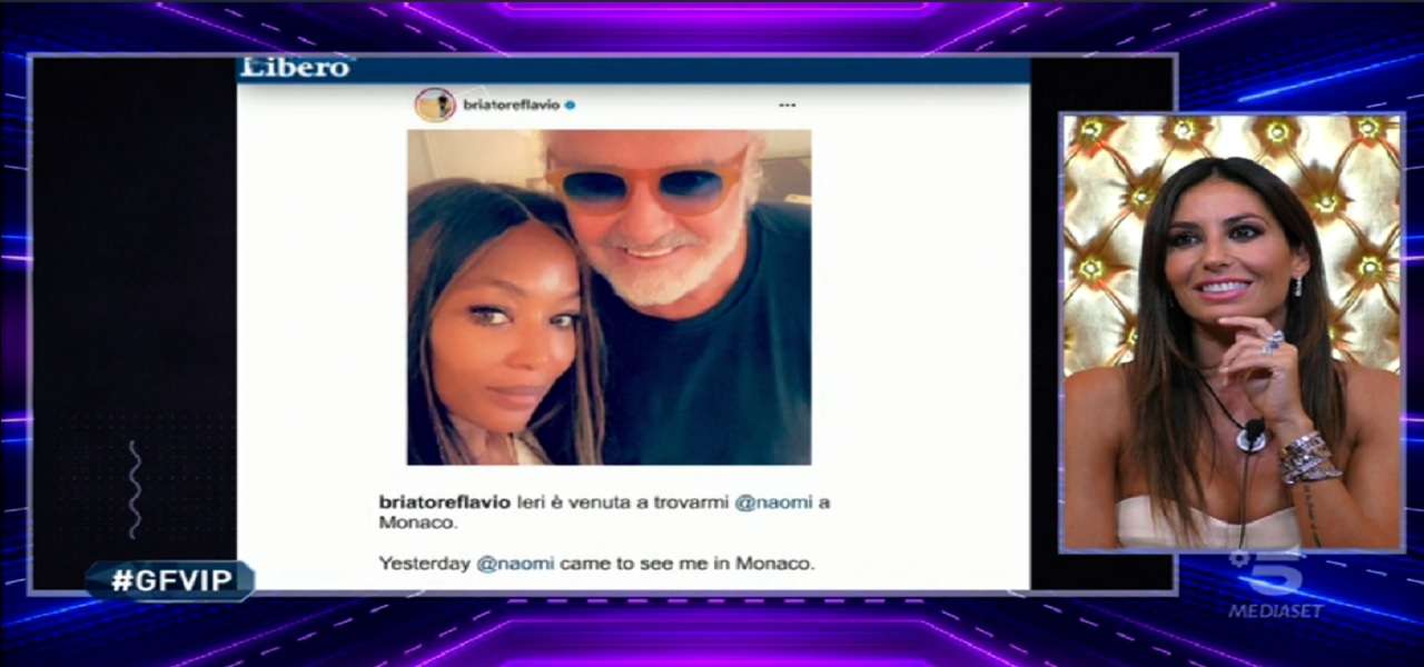 Alfonso Signorini stuzzica Elisabetta Gregoraci nel corso della nuova diretta del Grande Fratello Vip 2020. Alla conduttrice mostra infatti il tweet pubblicato dal suo ex Flavio Briatore qualche giorno fa, che mostra una foto insieme a Naomi Campell, sua note ex. Signorini svela che è andata a trovarlo pochi giorni fa a Montecarlo, ma la Gregoraci fa subito chiarezza. “Non sono mai stata gelosa di Naomi, neanche quando ero fidanzata con Flavio Briatore. Lei ha poche persone su cui può contare, e una di queste è proprio Flavio.” Tuttavia la Gregoraci fa un tuffo nel passato e ricorda una volta in cui con la Campbell ha invece litigato e anche molto.