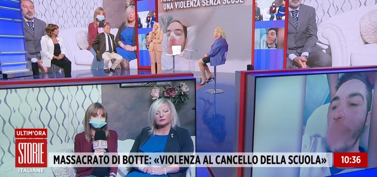La dirigente scolastica, riferisce l’inviata del programma, dice di non avere ricevuto informazioni dall’autorità giudiziaria e la mamma dell’adolescente picchiato afferma: “Lei e la vicepreside ci hanno contattato per avere informazioni sulle condizioni di salute del nostro figlio. Credo che la preside non si sia esposta più di tanto per non creare una situazione destabilizzante per la scuola…”. Il padre del ragazzo, Fabio, ha inoltre aggiunto che Emanuele ha ricominciato oggi a frequentare le lezioni per mezzo della didattica a distanza, perché “non se la sente di tornare in quel luogo, ma anche fisicamente non è ancora in grado di riprendere”.