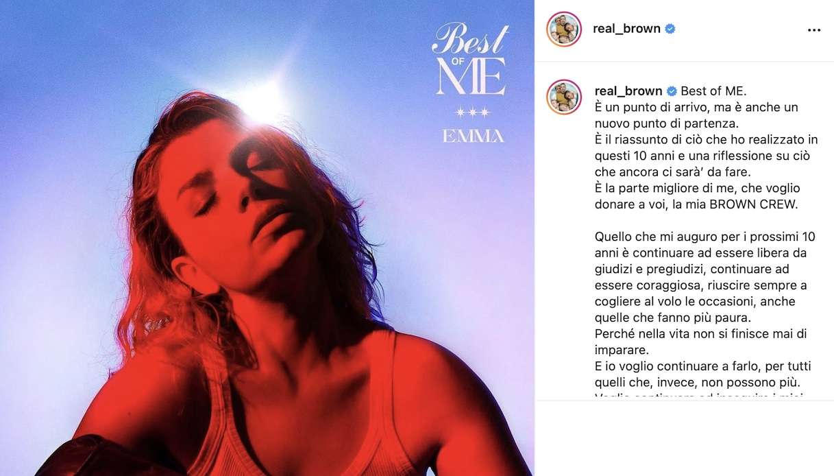 “Un punto di arrivo, ma anche un nuovo punto di partenza”, il commento della stessa cantante, presentando il suo nuovo album, che ha poi dato l’annuncio via Instagram in maniera scoppiettante: “Da VOGLIO CALOREEEEEEEEEE fino a FORTUUUUUUNAAAA CHE IO SONO FATTA COSÌ! 10 anni di musica,di concerti,di avventure sempre vissute al massimo! A mezzanotte esce BEST OF ME. Il riassunto più bello che potessi fare. Una storia straordinaria raccontata attraverso le nostre canzoni. Adesso tocca a voi ❤️ GODETEVELO!!!!!”.