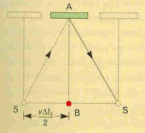 Se ora teniamo presente che l’interferometro è in un laboratorio sulla Terra, e che la Terra si muove durante l’anno in tutte le direzioni, compiendo un giro intorno al Sole, dovrebbe verificarsi prima o poi un moto rispetto all’etere, che supponiamo verso destra con velocità v.
