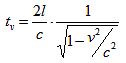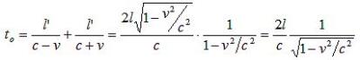 Non esiste più l’osservatore «fermo» rispetto all’etere, ma possiamo sempre considerare un osservatore O’ rispetto al quale O è in moto verso destra con velocità v; per O’, ricordiamolo, la velocità della luce è sempre c: O’ vedrà sul braccio verticale ancora il tempo tv, cioè il tempo t dilatato di un fattore γ; il calcolo sul braccio orizzontale sarà diverso rispetto al caso prima considerato perché la lunghezza l, che è posta nella direzione del moto relativo (nelle trasformazioni galileiane di valore indipendente dal moto) è ora contratta di un fattore γ, per cui al posto di l dovremo inserire l’; per cui si ha:
