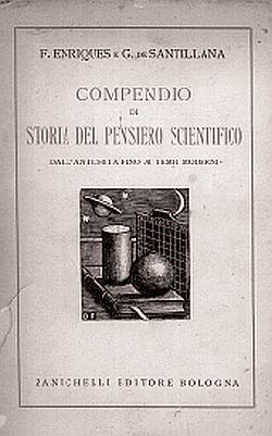 [A sinistra: Federigo Enriques, (1871-1946), matematico e filosofo della scienza, partecipa al dibattito teorico sulla natura della scienza prendendo posizione contro pragmatismo, positivismo e logicismo, teorie incapaci di cogliere il valore della realtà scientifica. L’opera di cui riportiamo il frontespizio è stata pubblicata nel 1936]