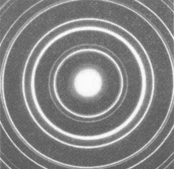 Tuttavia, con le onde associate alle particelle è possibile ripetere esperimenti di interferenza e diffrazione del tutto analoghi a quelli eseguiti con la luce. [Immagine che segue a sinistra: figura di diffrazione di elettroni ottenuta con monocristallo d’oro]