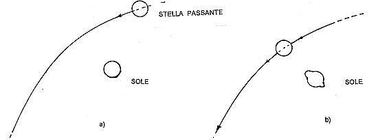 A causa di un passaggio di una stella in vicinanza del nostro Sole, l’azione gravitazionale di questo astro passante estrae dalla nostra stella, per una sorta di fortissima marea, una certa quantità di materia.