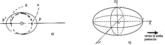 - Deformazione mareale causata sul Sole da una massa esterna; i rigonfiamenti massimi P e P’ sono in corrispondenza dei punti A e B