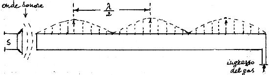 Un’evidenza sperimentale, nel caso di onde stazionarie in un tubo pieno di gas, è realizzabile facilmente. Una sorgente di onde acustiche, per esempio un altoparlante posto in S, provoca le vibrazioni di un diaframma flessibile che chiude un’estremità del tubo.