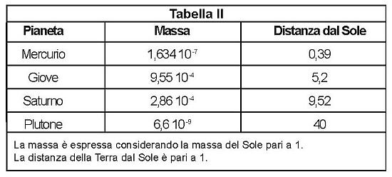 La Tabella II mostra i valori attualmente noti delle masse planetarie in corrispondenza delle varie distanze dal Sole. Come si può notare, questa predizione è abbastanza verificata a fronte dei riscontri osservativi.