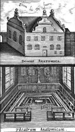 Niels diventa amico del figlio di Simon Paulli, professore di anatomia e medico di corte, ne frequenta l’abitazione, dove campeggiano 24 scritte variamente ammonitrici, indici di un ambiente austero: «O uomo, ricordati dell’eternità. L’occhio di Dio si è posato su di te!», «Una ricca cucina è madre di malattie». [Immagine a destra: Il primo edificio dell’Università di Copenhagen fu la Domus anatomica con relativo anfiteatro, completato nel 1644]
