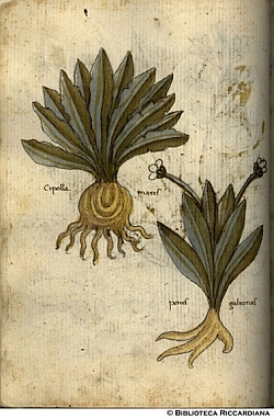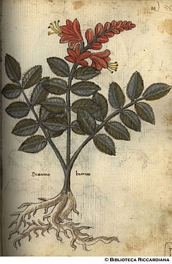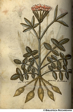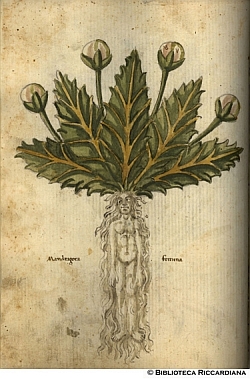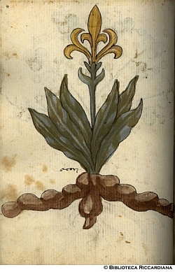 Le immagini che corredano questo articolo sono disegni acquarellati di scuola fiorentina della seconda metà del sec. XV. Esse sono conservate a Firenze, nella Biblioteca Riccardiana, Ricc. 2174, Erbario. Si ringrazia la Biblioteca Riccardiana di Firenze per l’autorizzazione all’uso delle immagini, su concessione del Ministero per i Beni e le Attività Culturali. È vietata ogni ulteriore riproduzione con qualsiasi mezzo. |