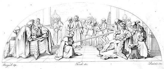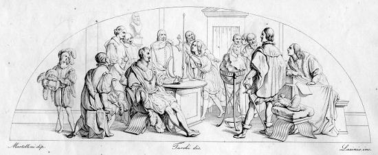 I Discepoli di Galileo e l’esperienze all’Accademia del Cimento con Leopoldo dei Medici (incisione di Paolo Lasinio tratta dall’affresco di Gaspero Martellini)