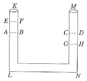 [A sinistra: Schema di tubo a U (Proposizione XLIV, secondo libro dei Principia)]