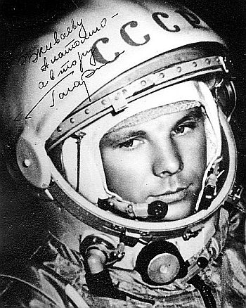 Yurij Alekseyevic Gagarin [Immagine a destra], aveva ventisette anni quando compì la sua impresa, essendo nato nel 1934 nel piccolo villaggio di Klushino, vicino a Smolensk, dove suo padre lavorava come falegname in un kolchoz.