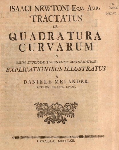 Un’idea generale ma molto vaga [Immagine a sinistra: Frontespizio del trattato di Newton “De quadratura curvarum“].